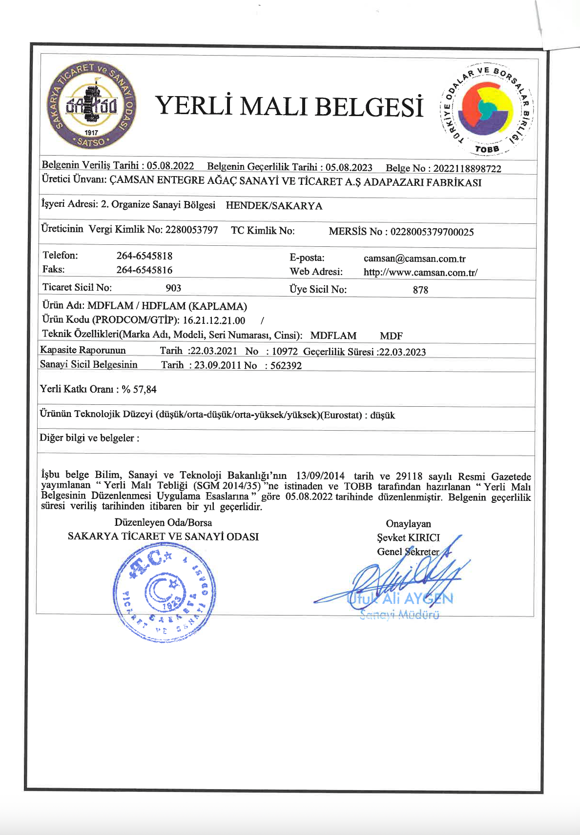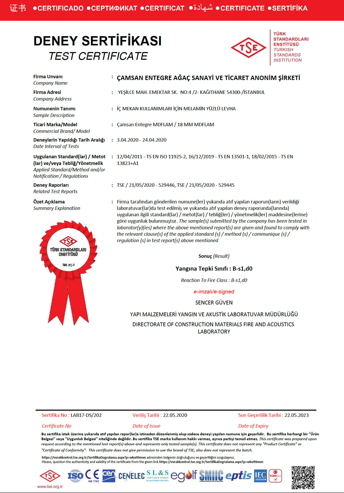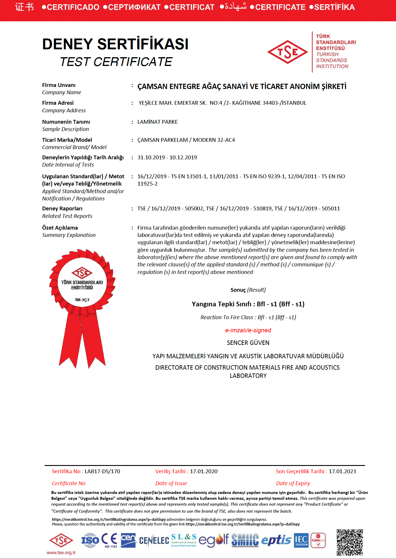 PARKELAM Yangına Tepki Sertifikası - Modern-AC4